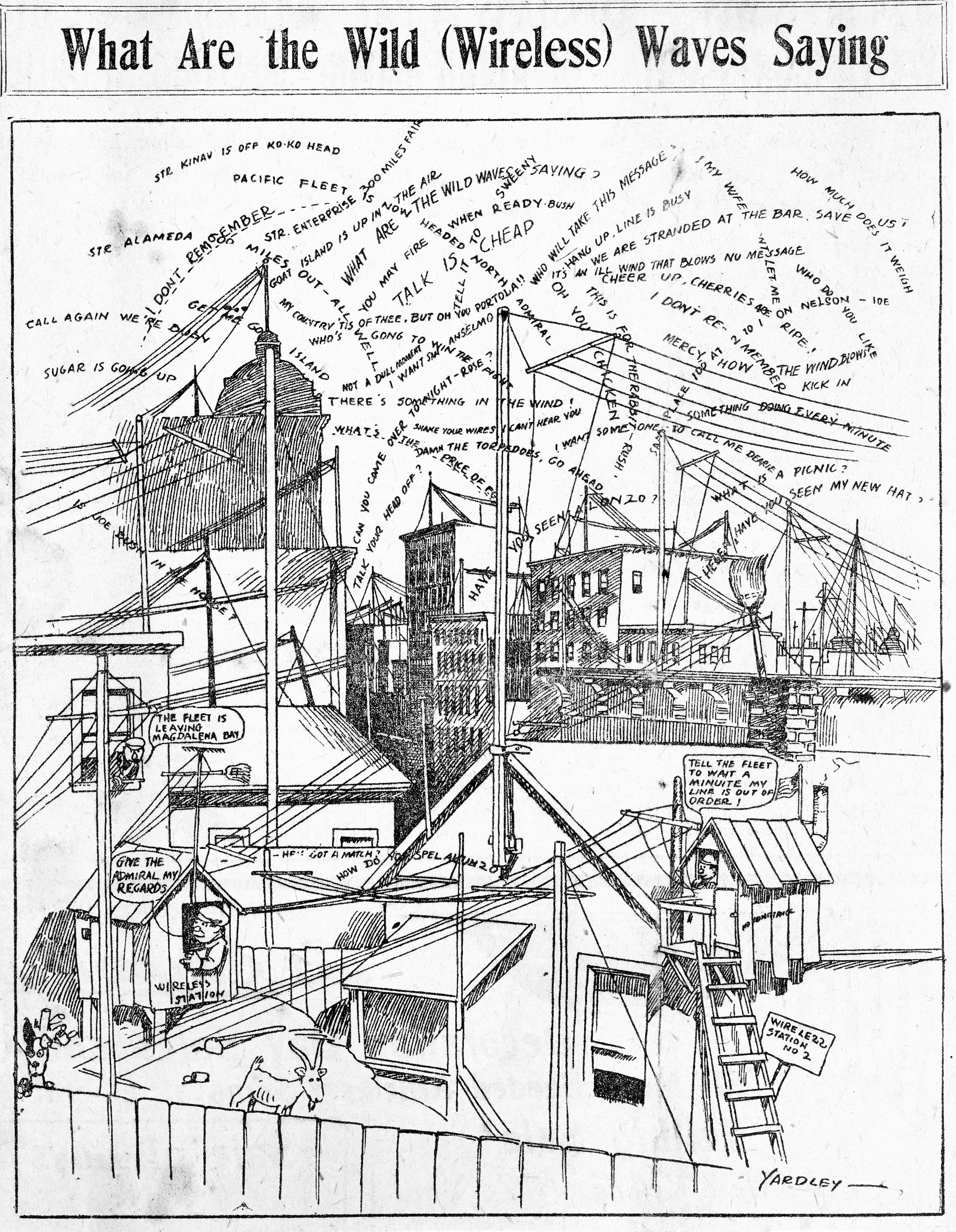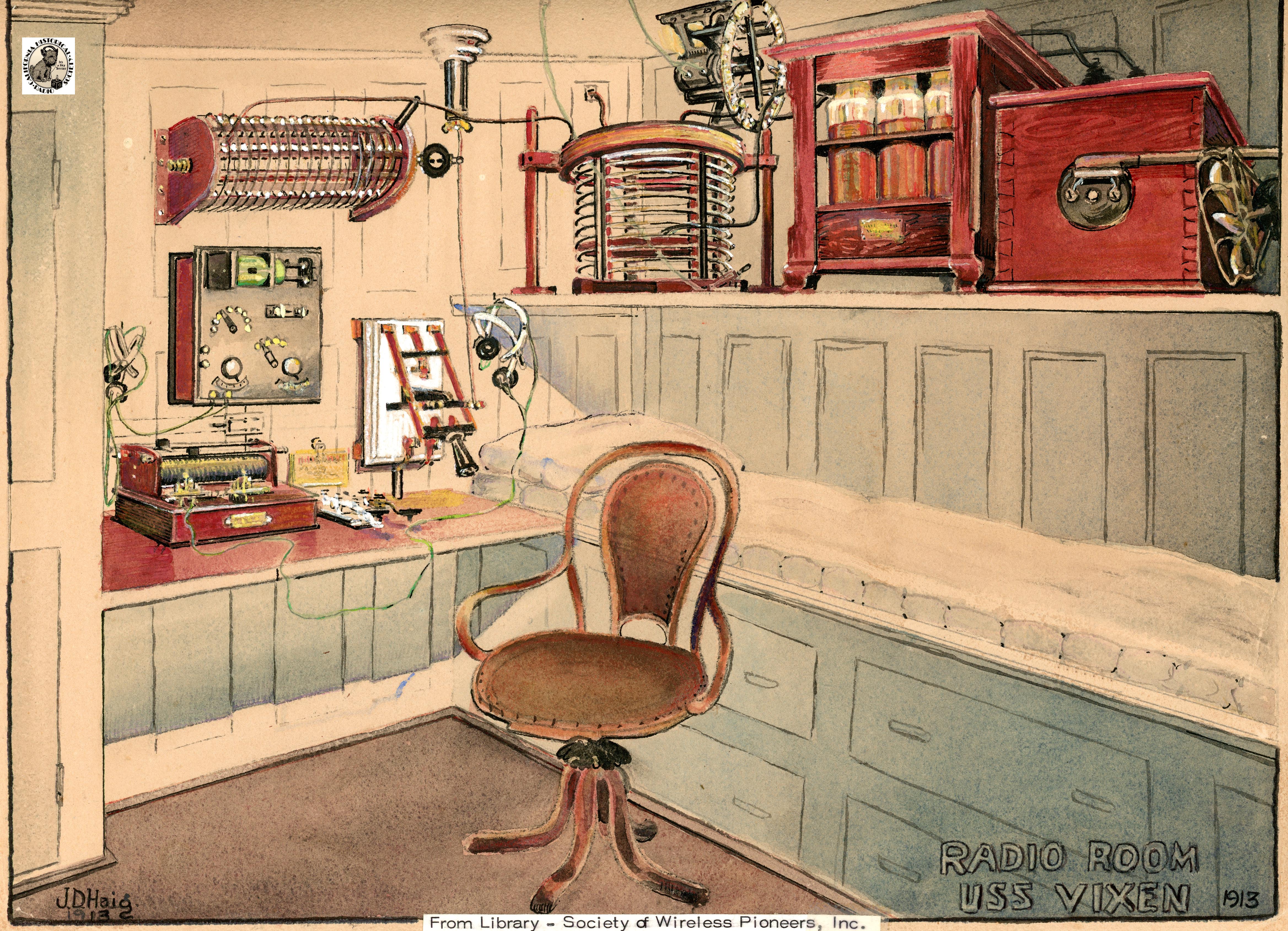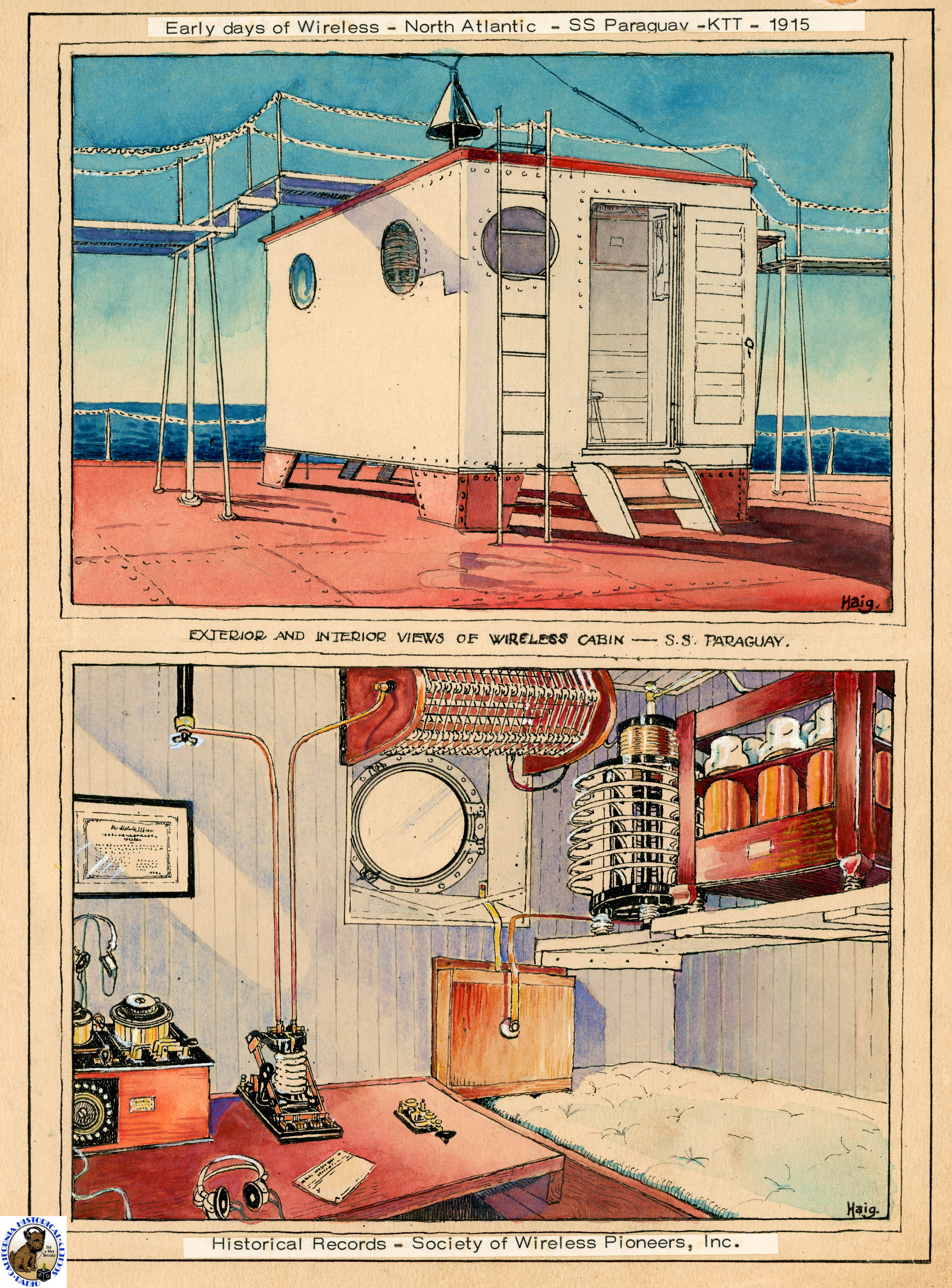 Although apparently not a member of SoWP, cartoonist Al Merrikin was a ship Radio Officer and his cartoons like those above appeared in Society publications. Sadly, on March 27, 1971, Merrikin’s ship, the S.S. Texaco Oklahoma, broke in half in a storm off Cape Hatteras, and he was among the 31 people killed. His work was in the finest tradition of wireless operators and his name is engraved in the Wireless Operators Memorial in Battery Park, New York.