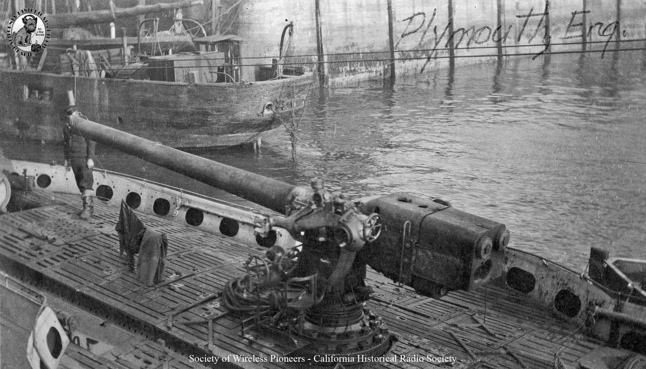 A little web research and another account in the SoWP archives make this story even more interesting. For the latter, we have confirmation from US sailor Charles A. Sauerwine, Electrician 1st Class on the USS O’Brien. Although apparently not a SoWP member, his World War I diary made its way into the Archives via the late, great, and much missed radio historian Alan Douglas (AWA). His ship, which had been escorting convoys across the Atlantic during the war, was in port in Plymouth on December 18, 1918. In his entry for that day Sauerwine notes “While towing a German sub into Plymouth, the sub rammed the USS Parker making a hole on the port side of the deck house.”