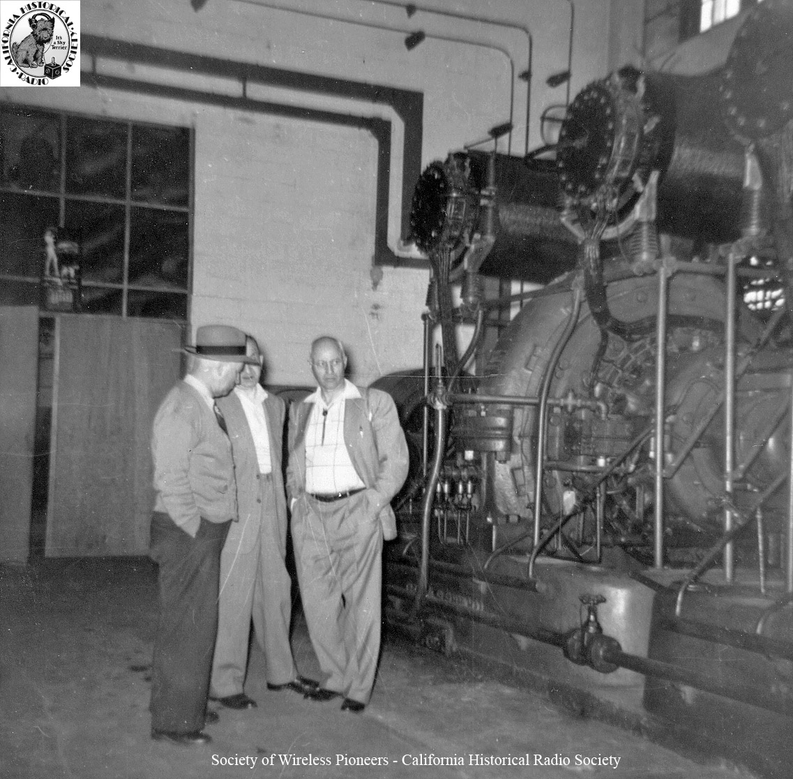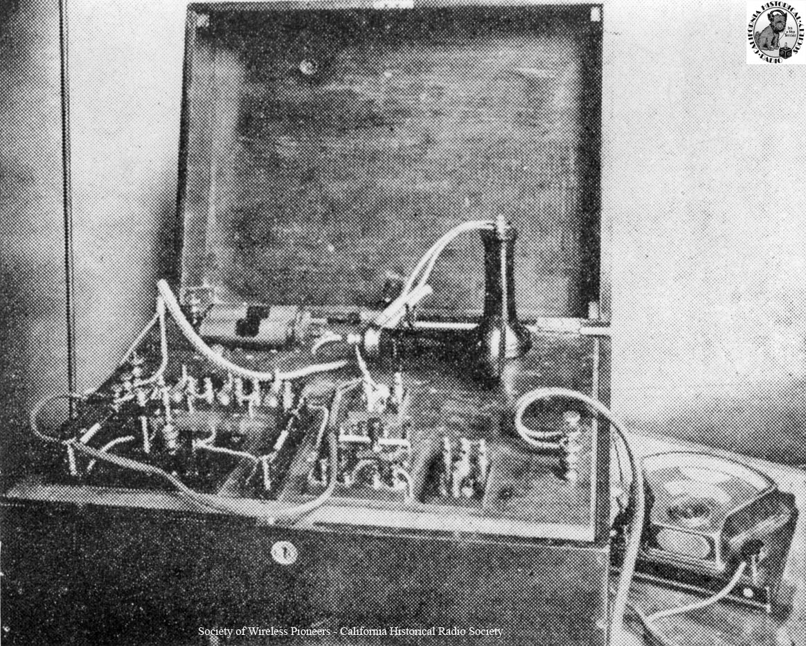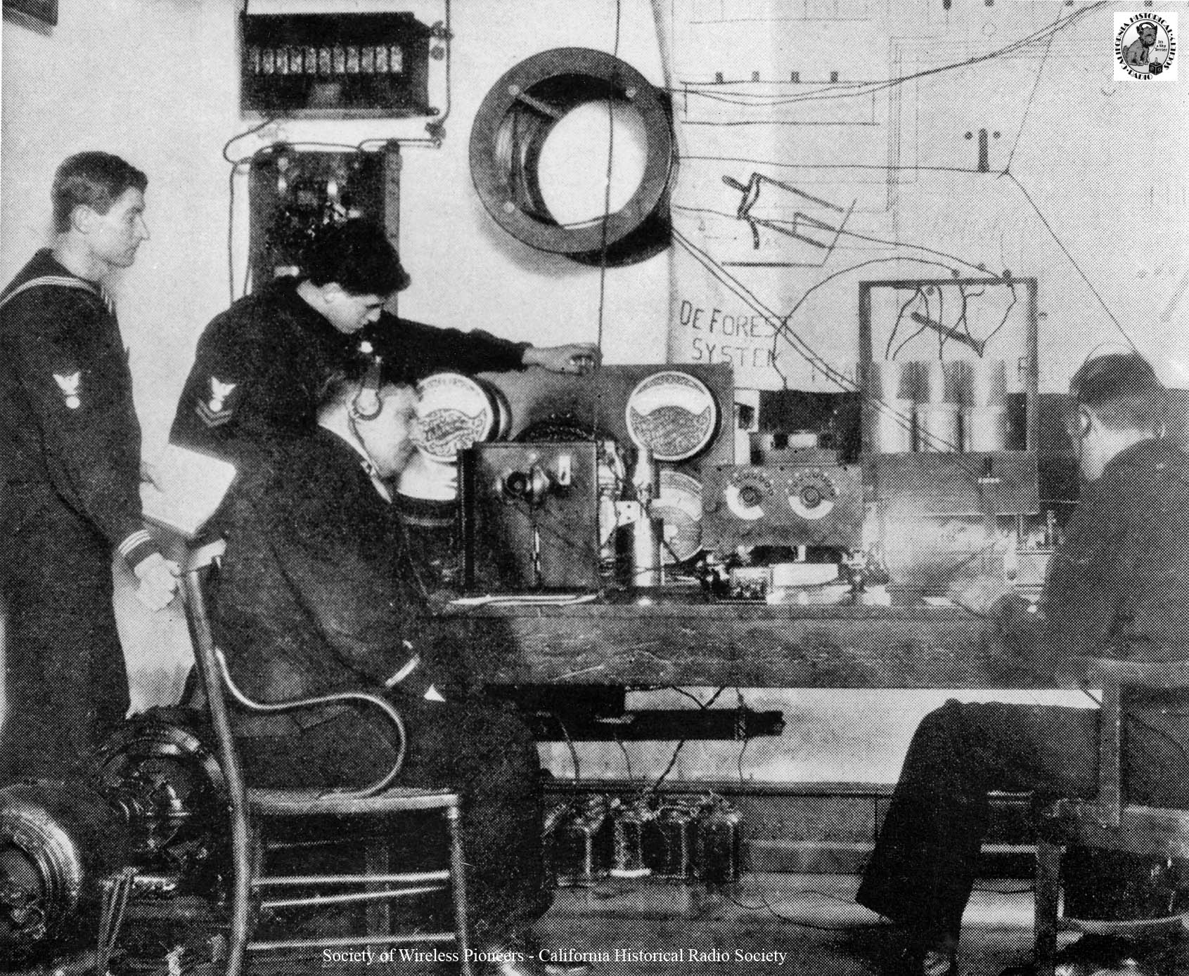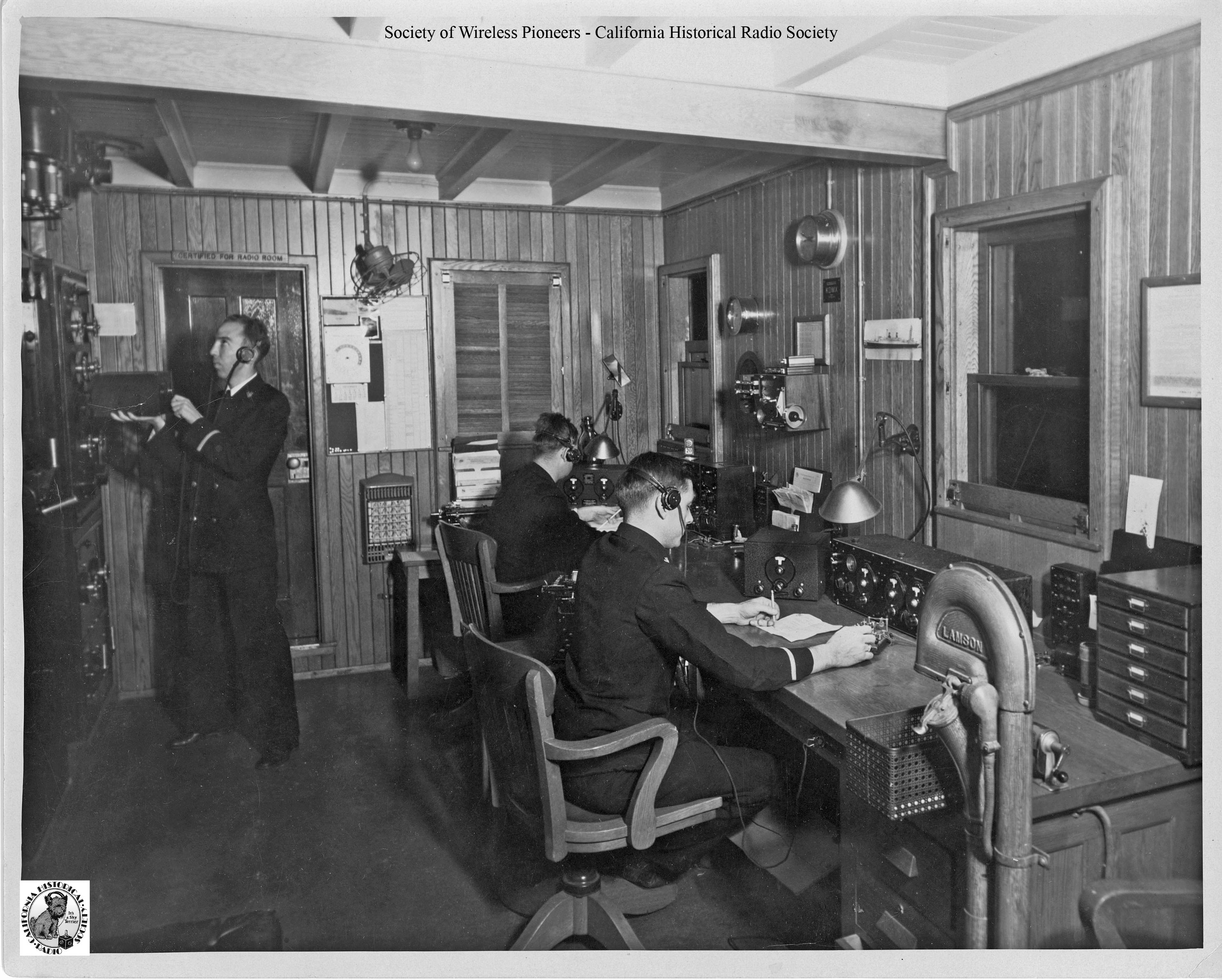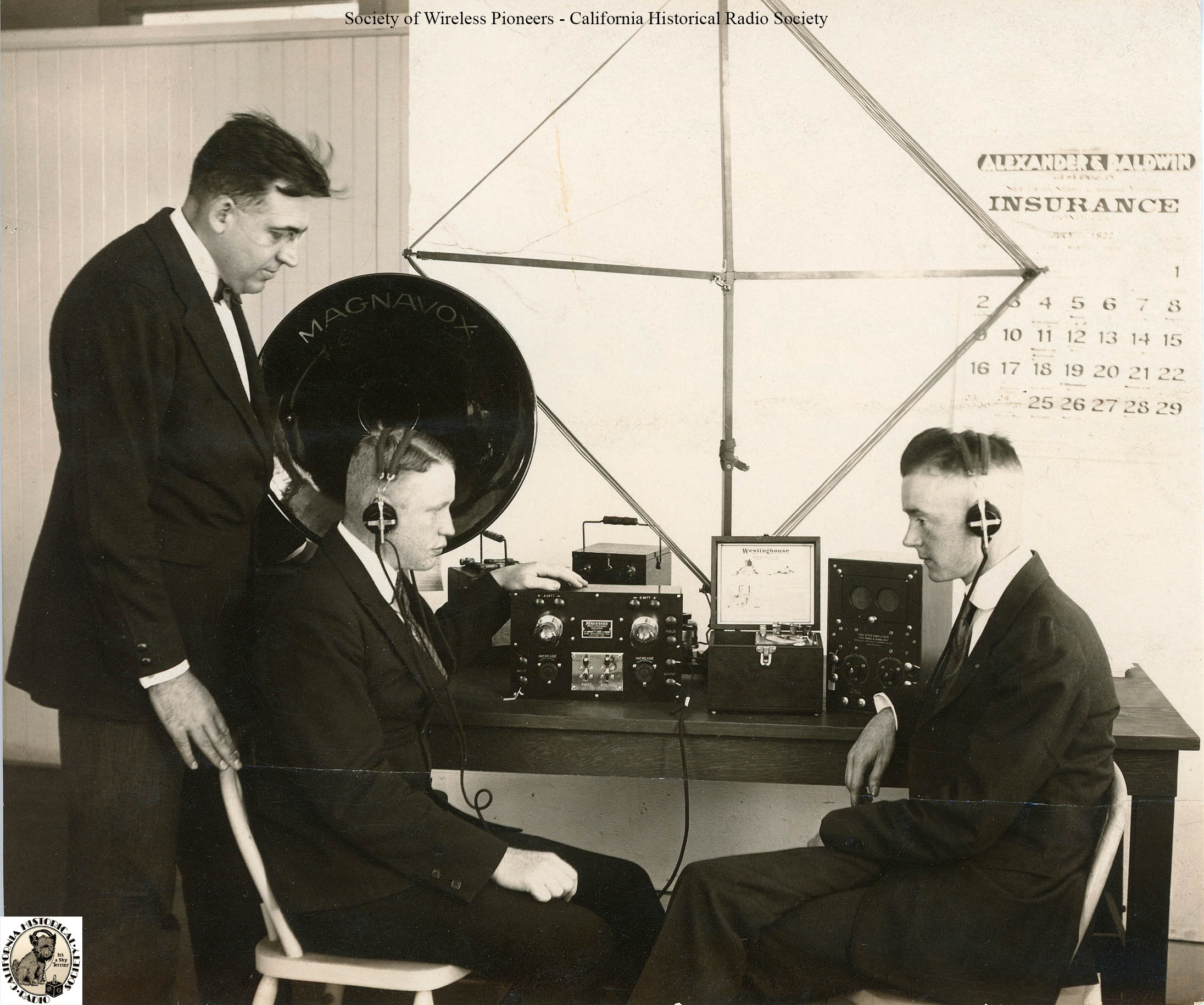 1st “phone” call HI to CA, Matsonia to KPH, July 26, 1922. L to R: Teal, LaFetra, Slater