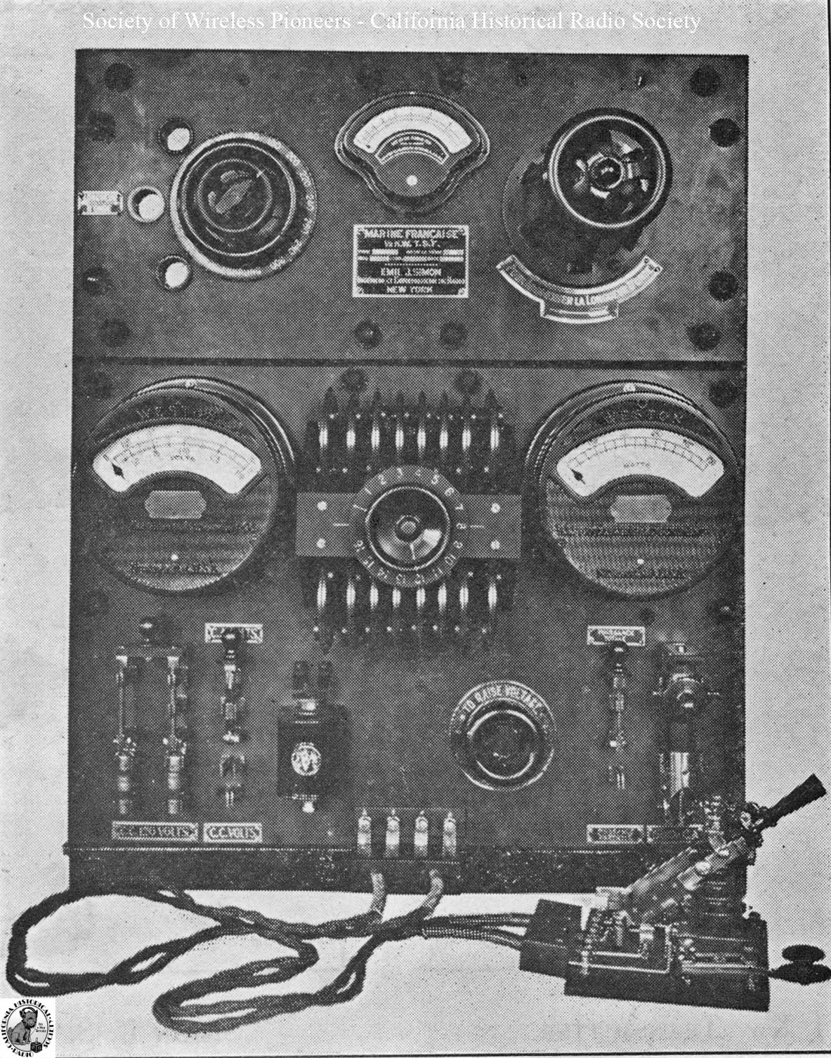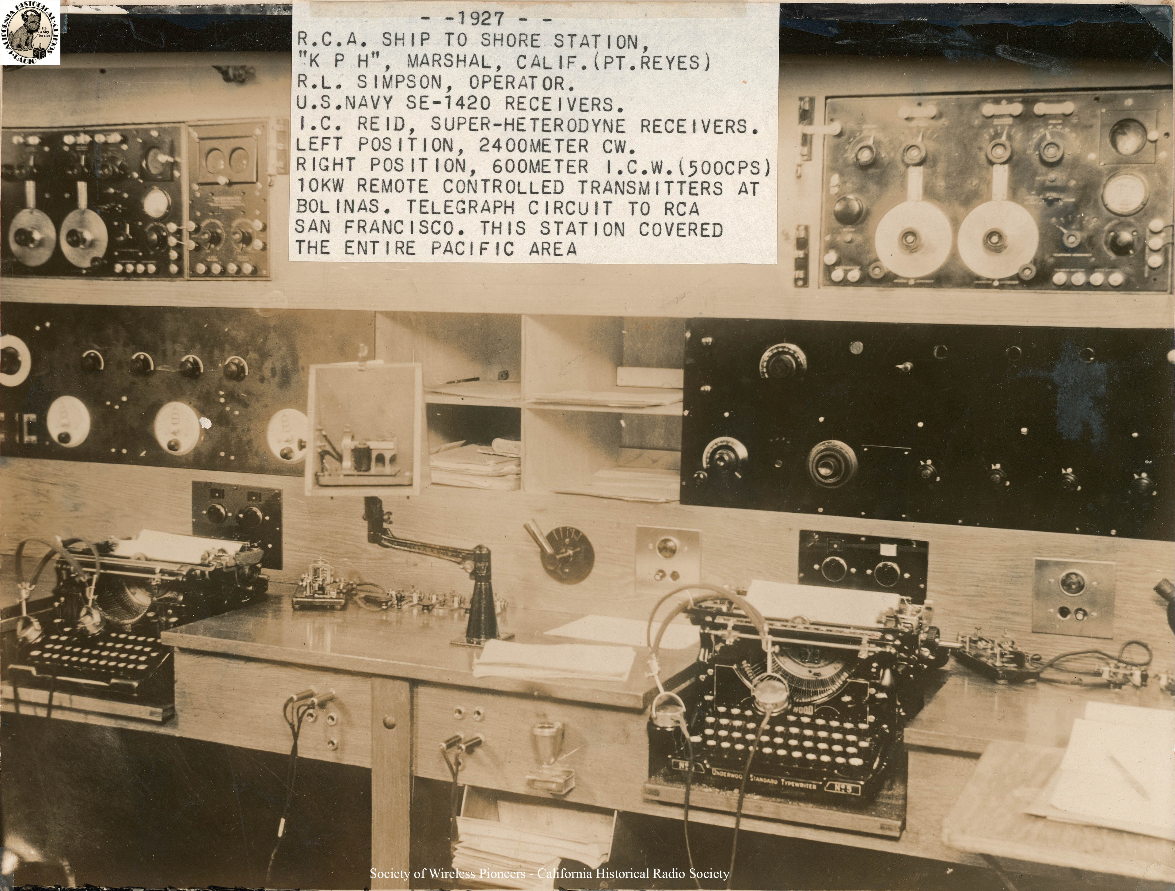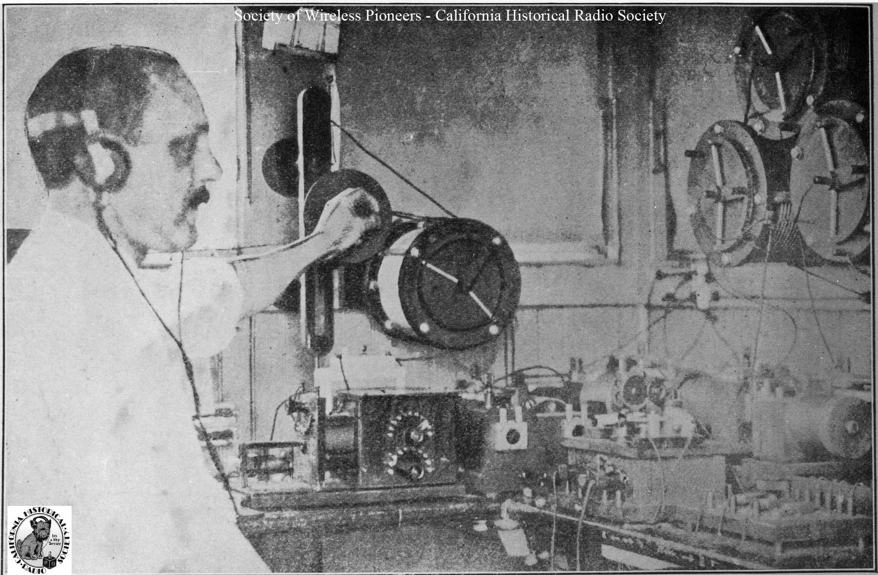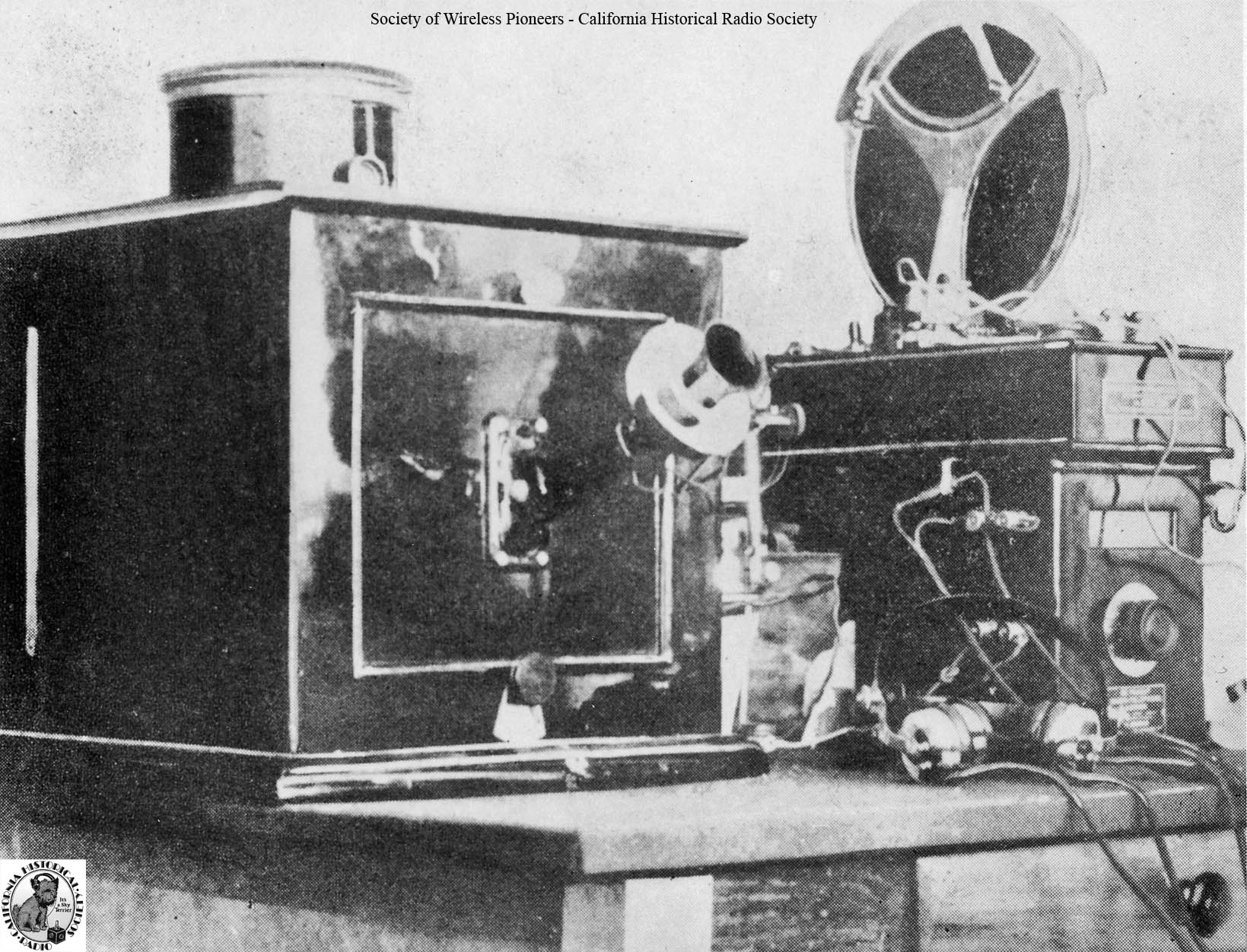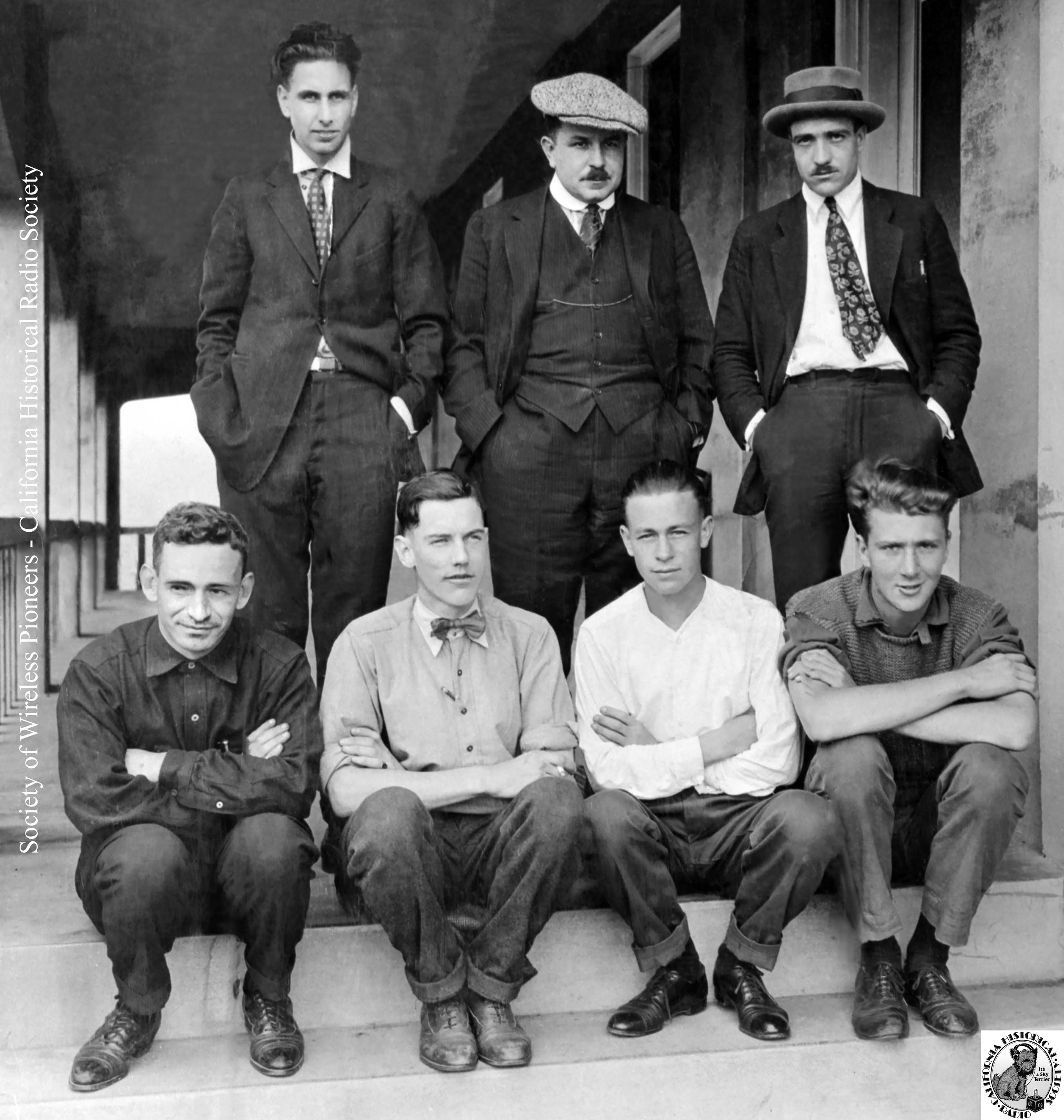 1st “phone” call HI to CA, Matsonia to KPH, July 26, 1922. L to R: Teal, LaFetra, Slater