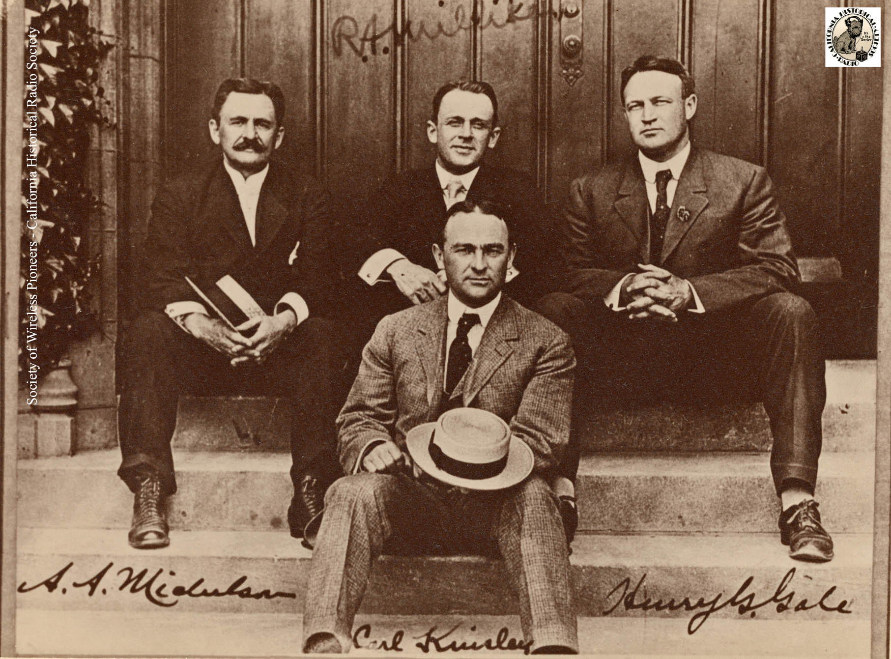 The photo of the University of Chicago physics department faculty below shows wireless inventor Carl Kinsley in distinguished company. To his right, Michelson (along with Edward Morley) designed and carried out the experiment that disproved the existence of “ether”, while behind him Millikan was the first to determine the charge on an electron. These names conjure up high school or college physics courses!