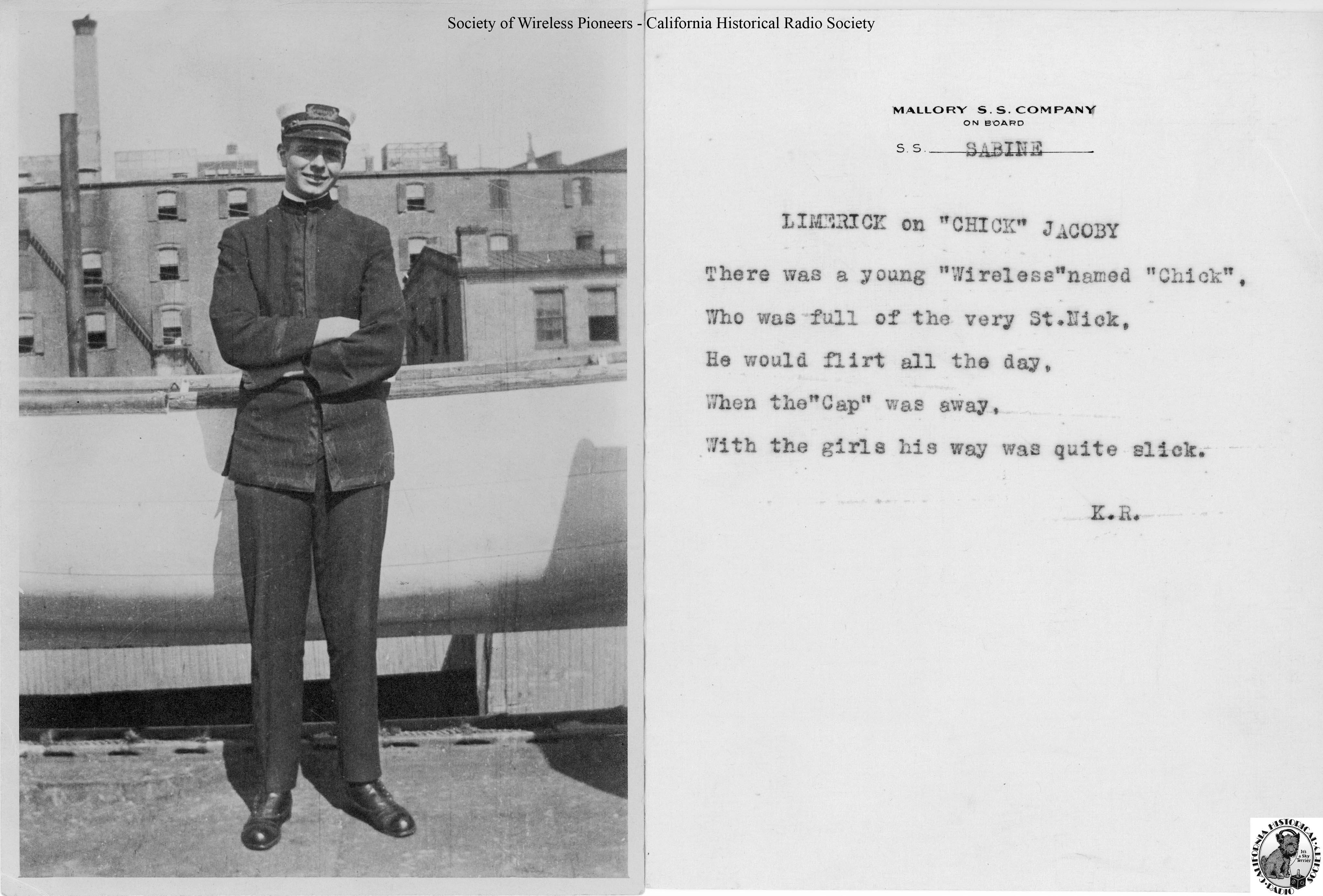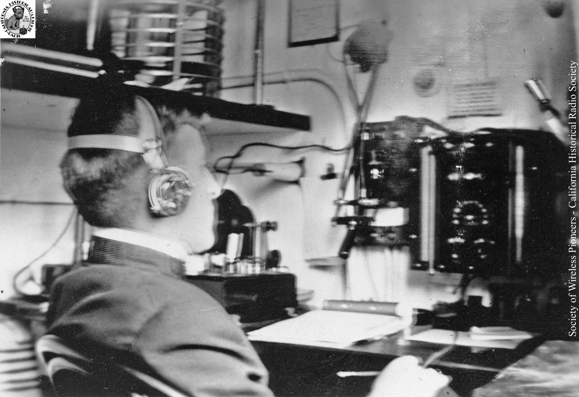 Ben Beckerman in radio room, SS Hamilton, 1908