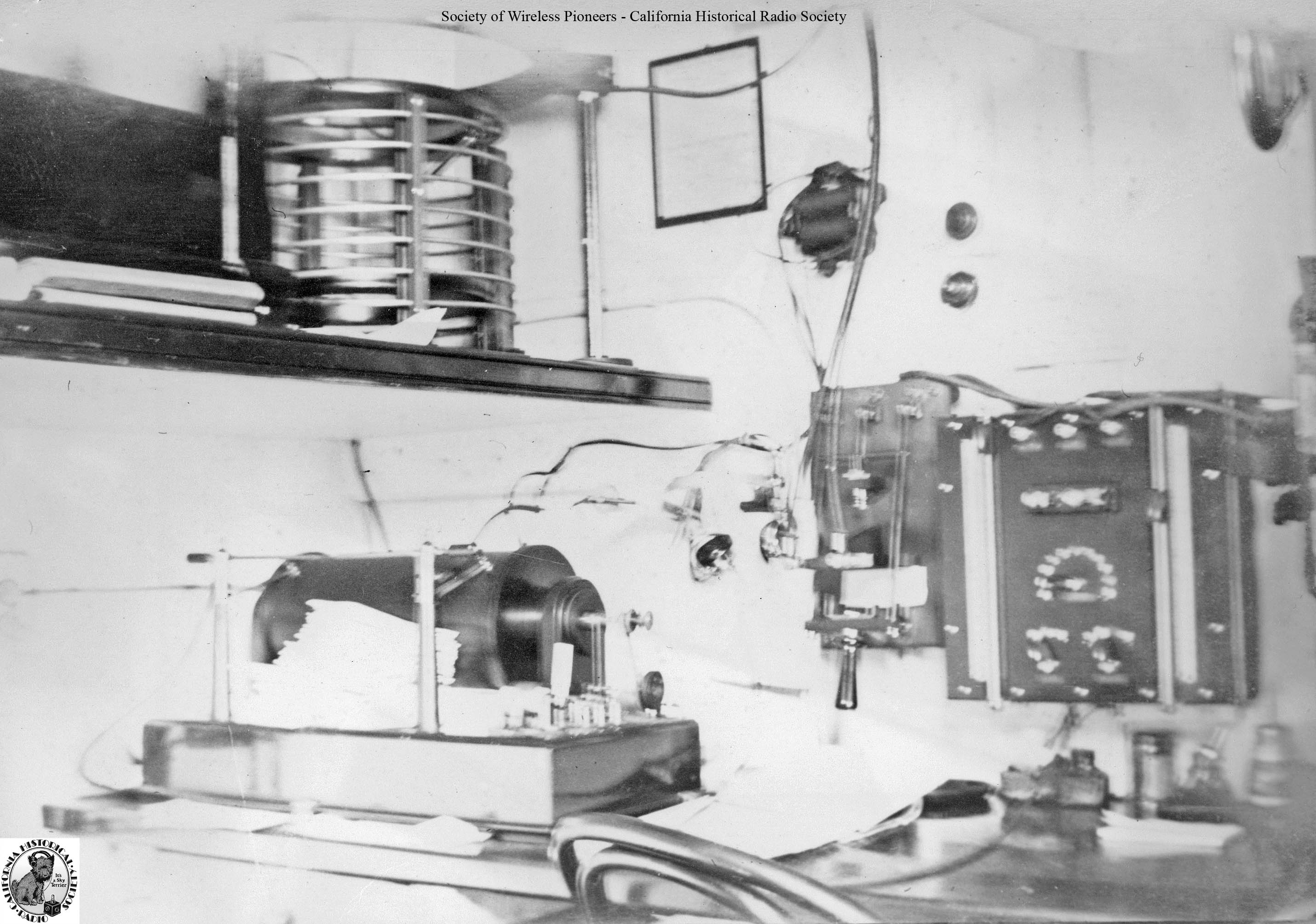 Radio room, SS Hamilton, 1908. Note 10″ spark coil