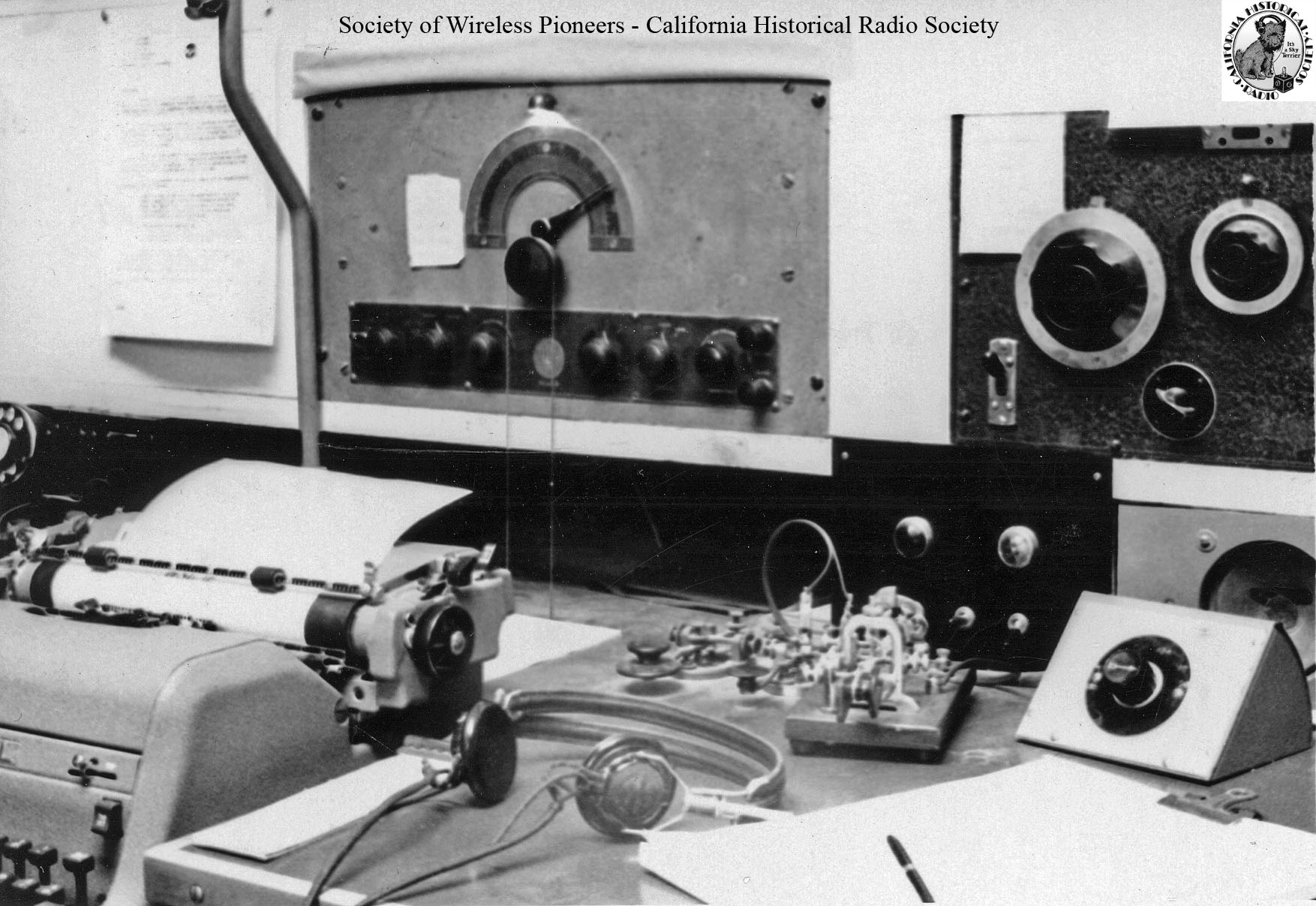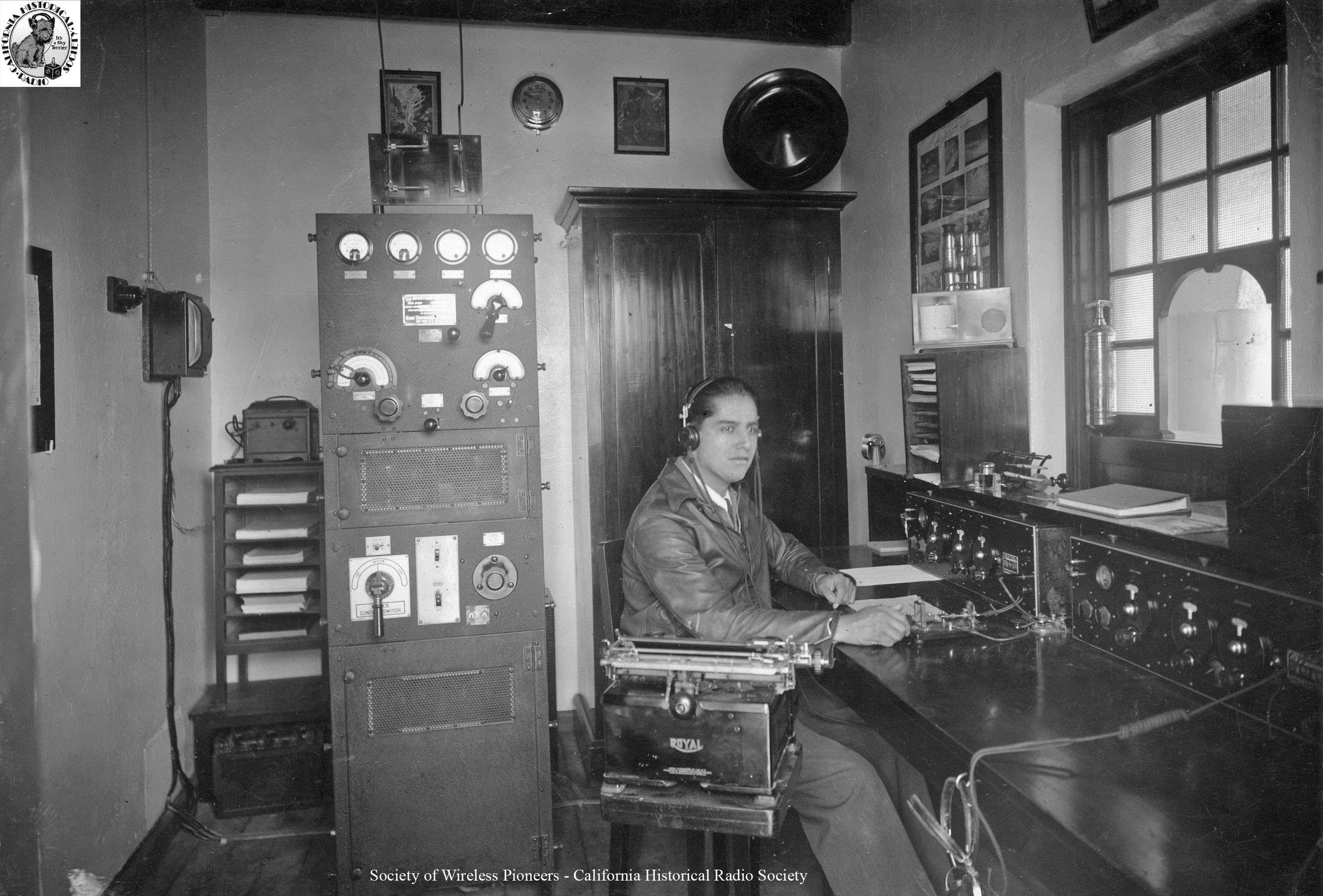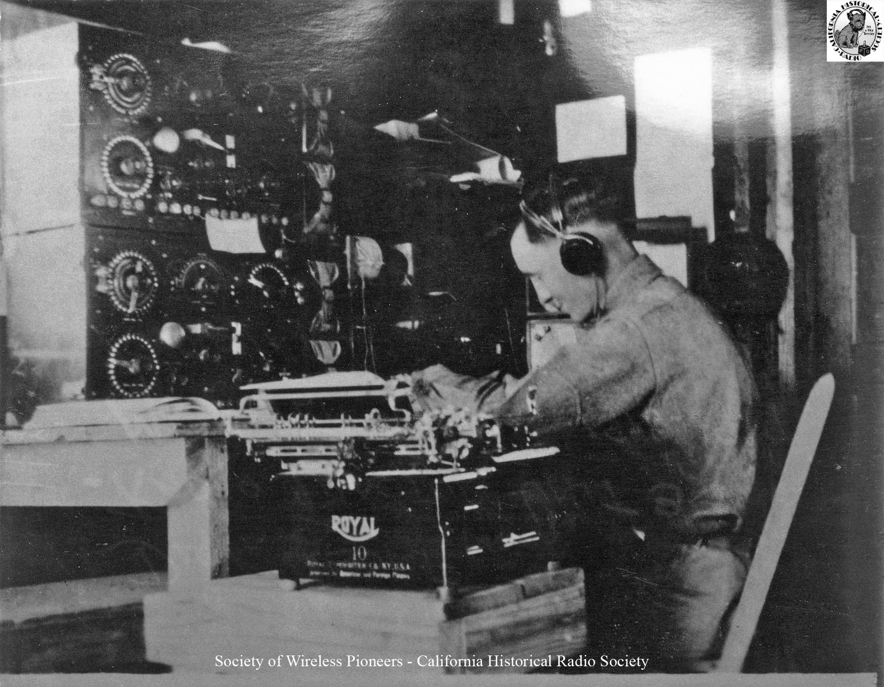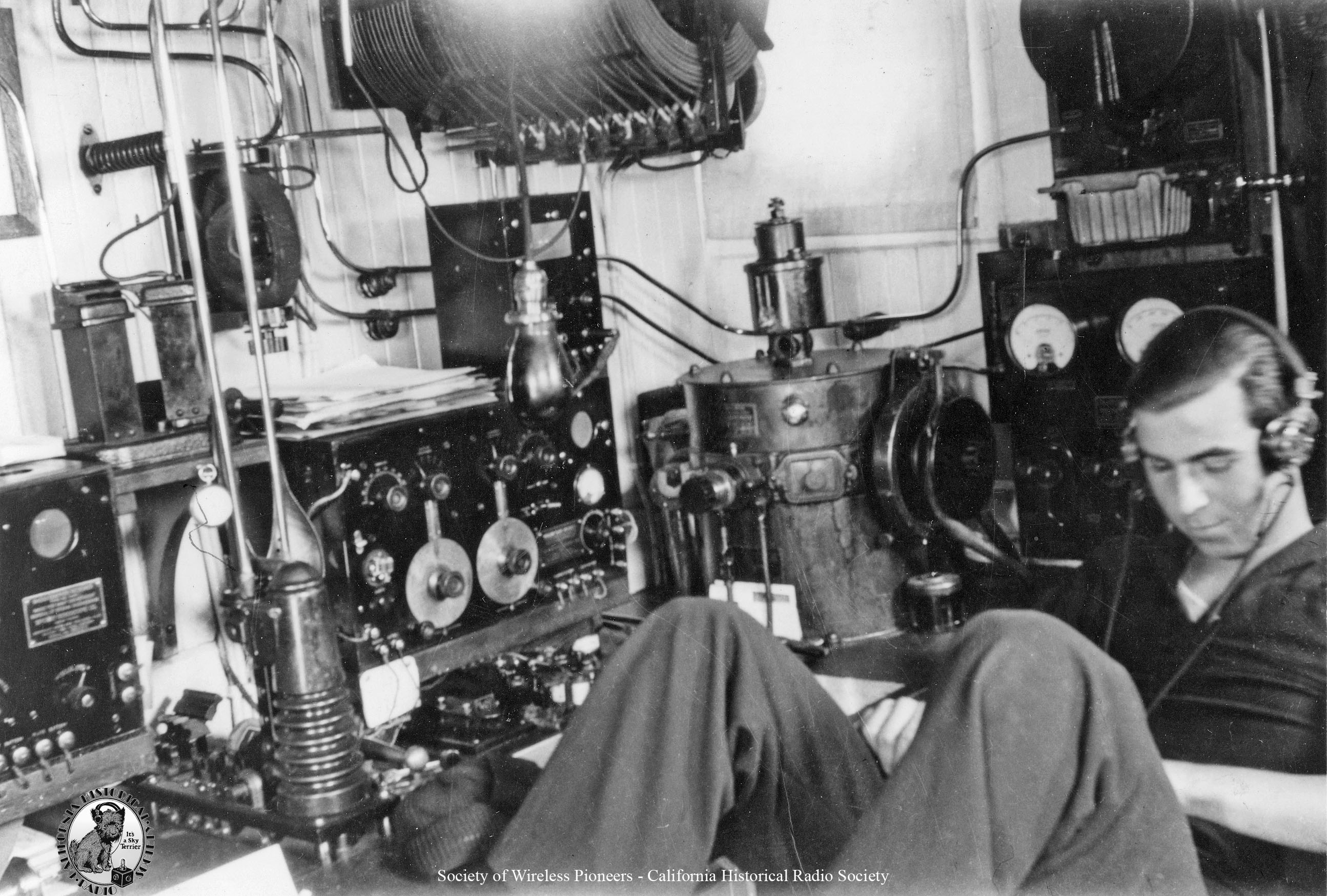 Richmond Blake, RM 1st Class, USCG Cutter Modoc, 1924. Note arc transmitter, center.