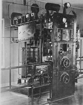 After nearly 10 years aboard more than a dozen ships as well as brief stints at shore stations (KGH/KEK in Portland, Oregon and KFS in San Francisco), Enderlin was hired as a radio engineer by The Tropical Radiotelegraph Company, a subsidiary of the United Fruit Company, which controlled the lucrative banana market and accounted for much of the US commercial interest in Latin America. Among the stations he helped build was Almirante Radio in northern Panama. Its 1 kW master oscillator is shown in the second photo, and its 30 kW rectifier (15,000 V @ 2A) in the fourth photo below.