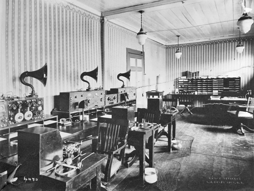 He also worked on (and photographed) station UR, located in San Juan, Costa Rica, shown below. Note the prominent horn speakers and convenient spittoons.